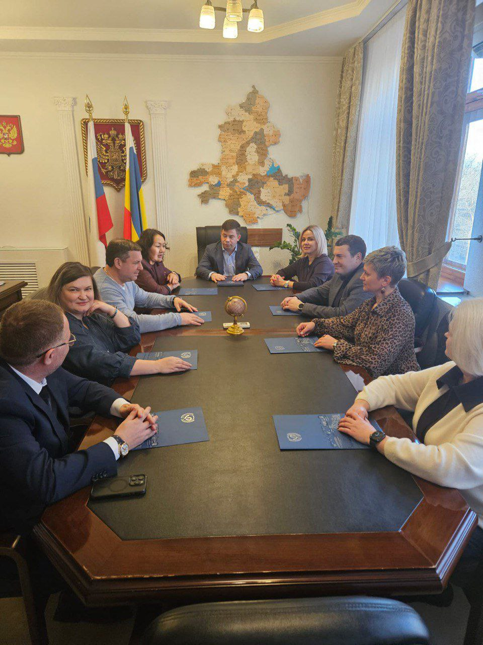 На встречу с руководителем областного ФОМС Максимом Григорьевым были приглашены директора ТФОМС Донецкой и Луганской народных республик, Запорожской и Херсонской областей, а также Республики Калмыкия, находящихся между собой в тесном взаимодействии.